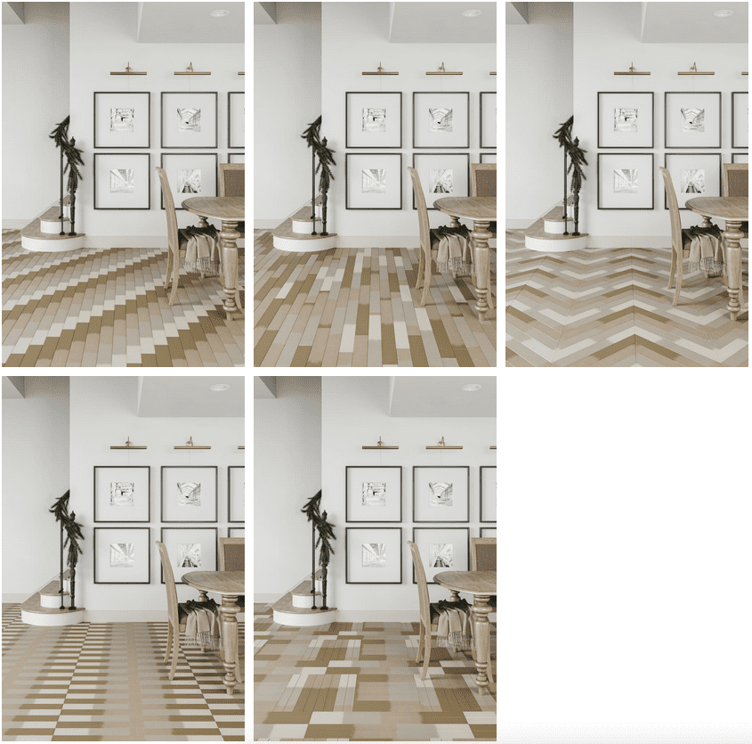 Currently, these floors can not be ordered. We will gauge the interest in such a unique product and potentially move toward offering the floor to our clients in 2022. The newest concept floor highlights how identical planks arranged in creative patterns can achieve very different aesthetics, significantly expanding the design possibilities.