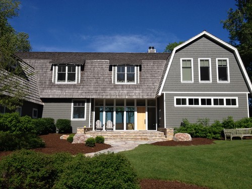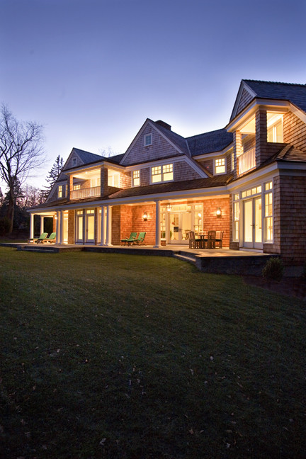 Having ample lighting at the entrance of your home serves two purposes. The first, and most important safety of you and your guests. Secondary, it can serve as an architectural accent that illuminates your home from dusk to dawn. The lighting in this ocean front home in Middleton, Rhode Island, is like a beacon of light, and captivates the eye, as the sun goes down.