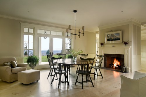 Pine Flooring in Contemporary Dining Room by Middletown Design-Build Firms Aquidneck Properties