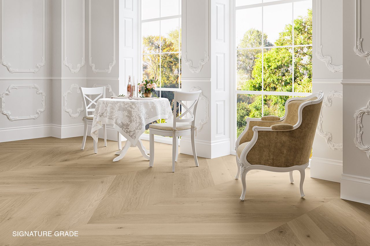 White tones buffed over a nutty brown wood vibe, under a low sheen finish, results in the perfect combination of cooler tones that magically create a sense of warmth. The two side of Elysian may make you wonder why you love it so much, but the mystery is part of the allure.