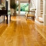 The entryway in this Chicago home, fully showcases the unique beauty of the grain in these Carlisle Birch wood floors.