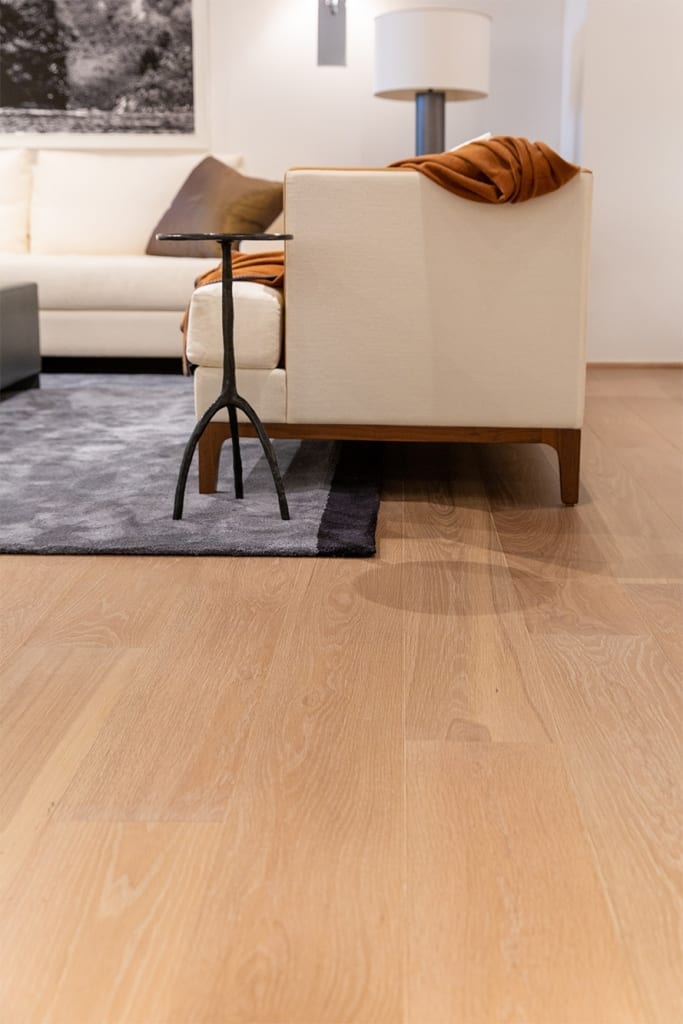 Whether you want a look that’s sleek, chic, or unique, we can provide a floor that will stand up to the kind of foot traffic you’d find in a commercial setting, like this plainsawn Over the Moon collection floor in the Boston Design Center, Boston, MA.